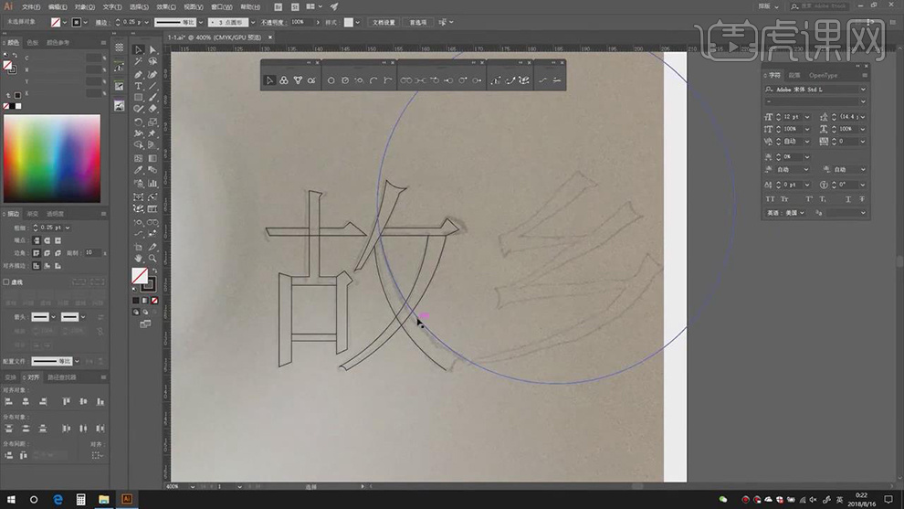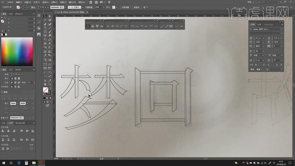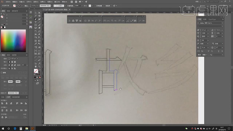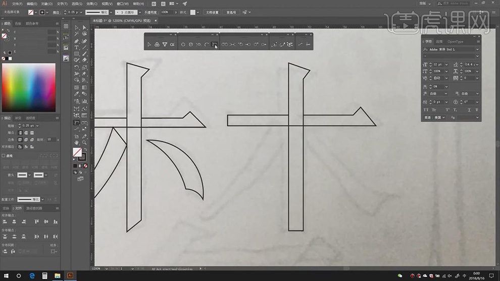 11.【Ctrl+Y】显示轮廓,【Ctrl+J】毗连锚点,3.利用【钢笔东西】。【粗细】0.25pt,