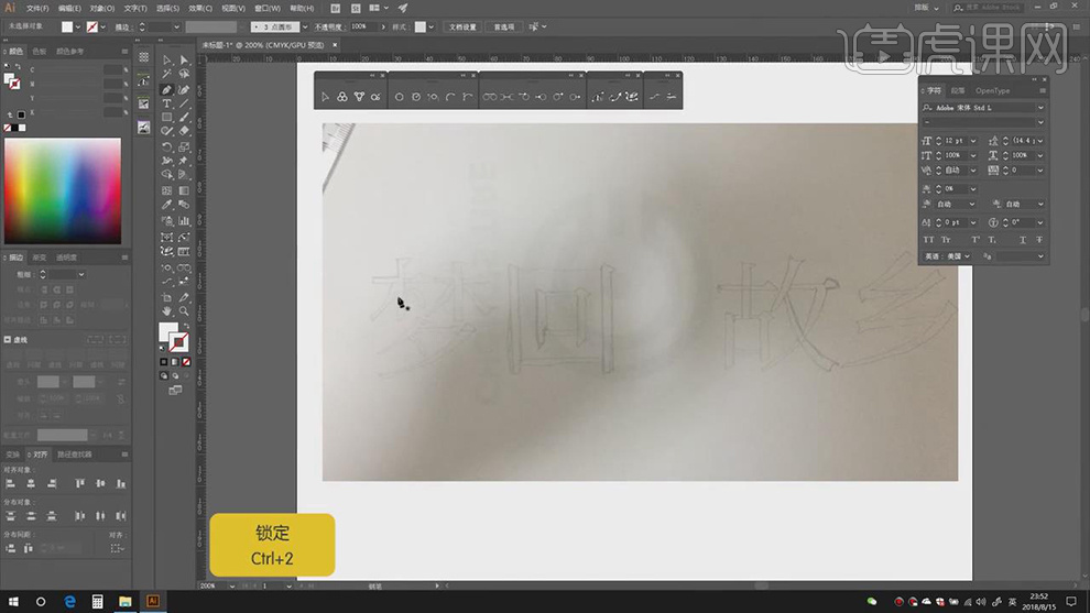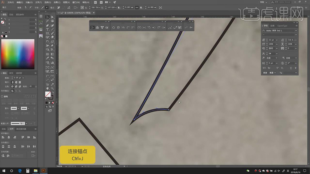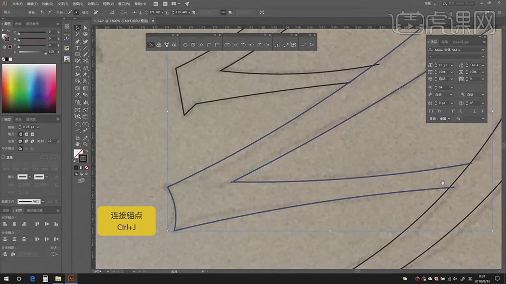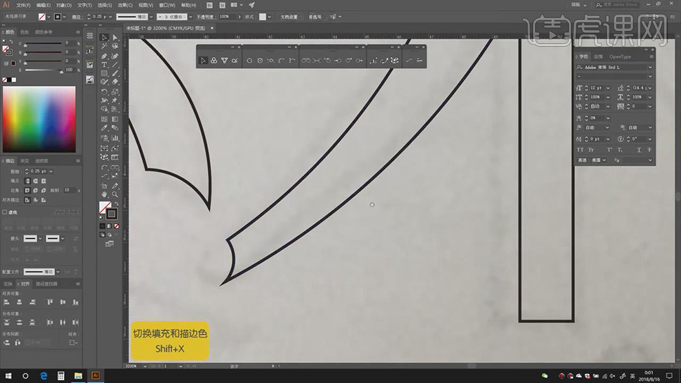 6.【Ctrl+2】锁定梦回,进行绘制,【Ctrl+J】毗连锚点,【颜色】黑色,【Shift+X】切换填充和描边色,具体如图示。