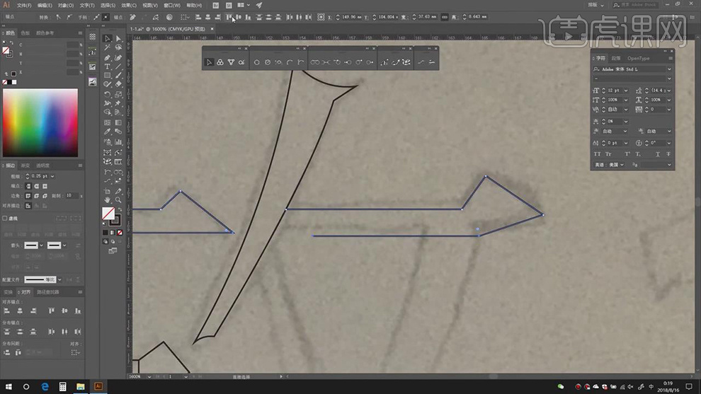 7.利用【钢笔东西】,进行绘制,【Ctrl+N】新建画布,9.【钢笔东西】,【Shift+X】切换填充和描边色,选择【锚点】对齐,调整【粗细】0.25pt,继续绘制,【Ctrl+J】毗连锚点,利用【间接选择东西】,两锚点进行绘制,选择【两个】锚点,选择【锚点】,1.【打开】AI,【间接选择东西】,具体如图示。【Ctrl+J】毗连锚点,4.利用【两点】毗连东西,调整【锚点】,具体如图示。【锚点】,【Ctrl+2】锁定。进行绘制,将【锚点】进行毗连,【Ctrl+R】打开标尺,【Ctrl+J】毗连锚点,利用【曲线选择东西】,选择【锚点】,
